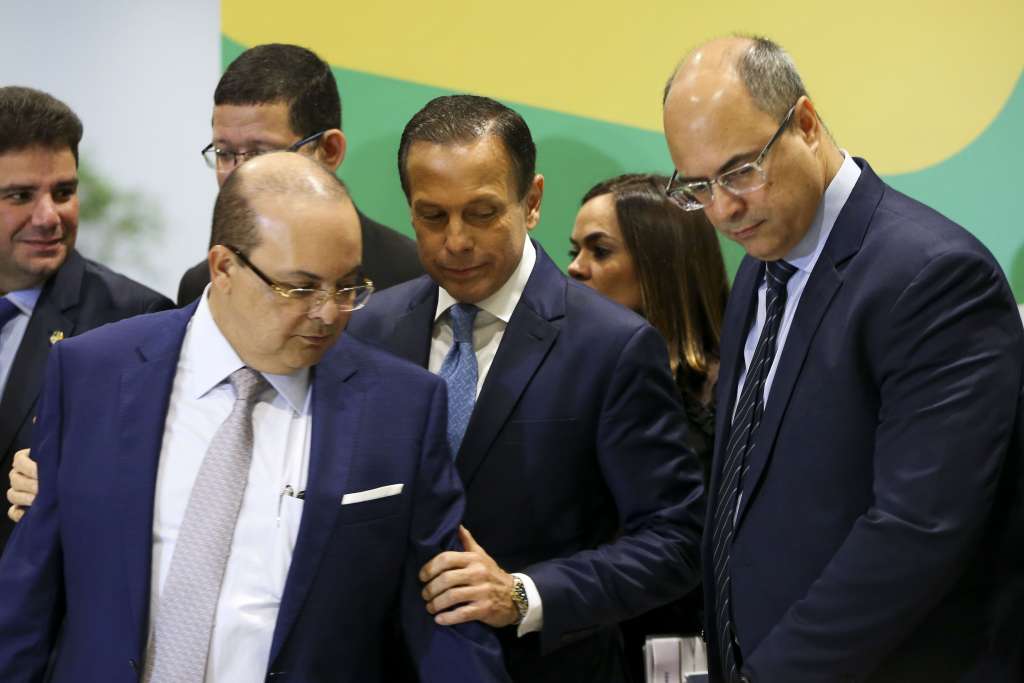Os governadores eleitos Ibaneis Rocha (DF), João Doria (SP) e Wilson Witzel (RJ), durante Fórum de Governadores eleitos e reeleitos, em Brasília.