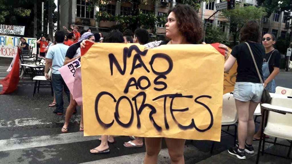 A manifestação acontece contra o bloqueio de verbas das universidades anunciado pelo governo Jair Bolsonaro (PSL).